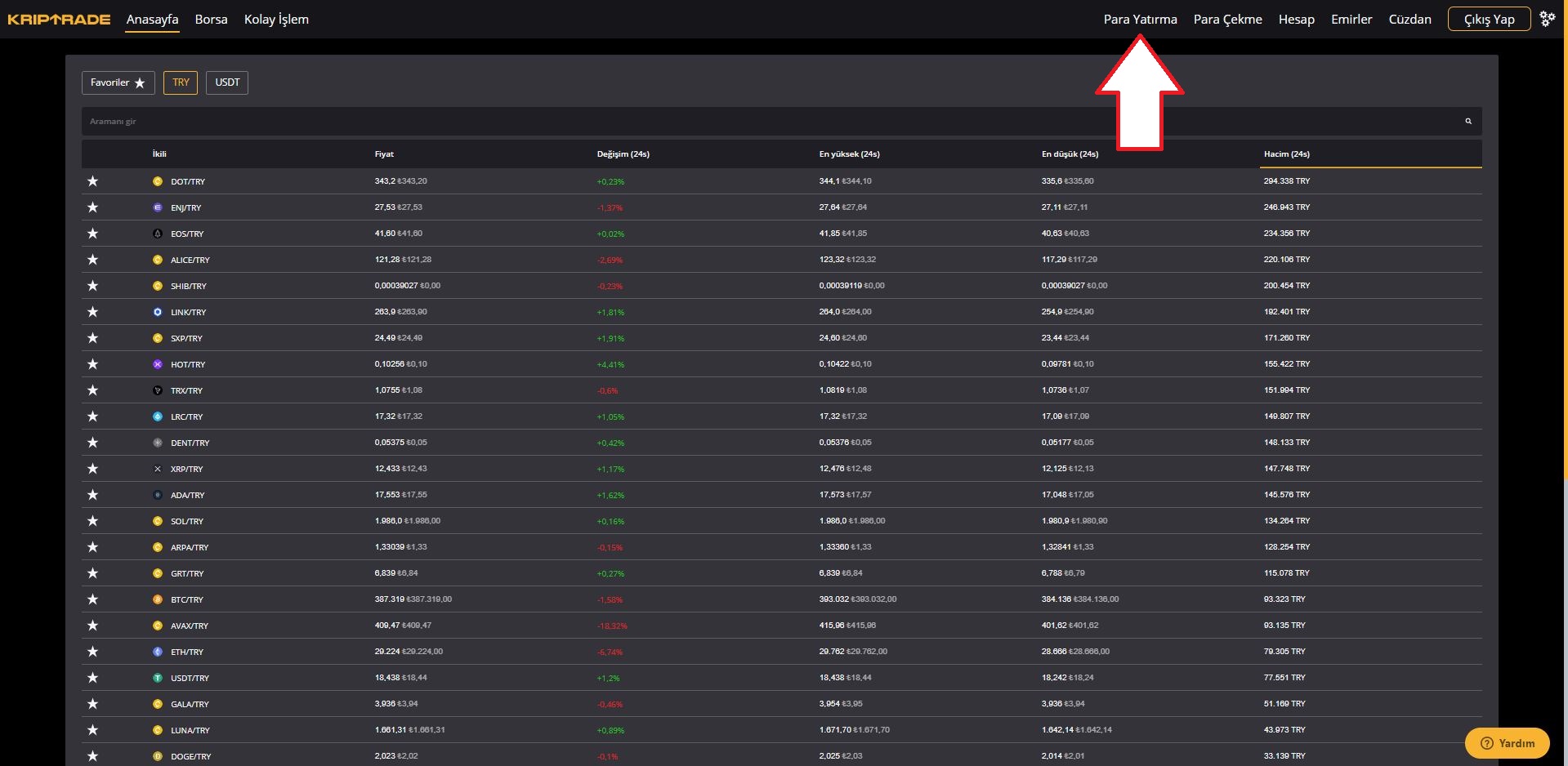 Kripto para yatırma işlemi ile ilgili bilgi almak için lütfen buraya tıklayınız.